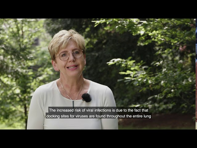 Das erhöhte Risiko für virale Infekte liegt daran, dass Andockstellen für Viren in der gesamten Lunge bis in die kleinsten Atemwege bei uns allen vorkommen. Hat man aber eine chronische Erkrankung wie COPD, sind gleichzeitig sehr viele aktivierte Immunzellen und Entzündungszellen da, und diese können das Andocken, das Eindringen und sogar die Vermehrung der Viren begünstigen.